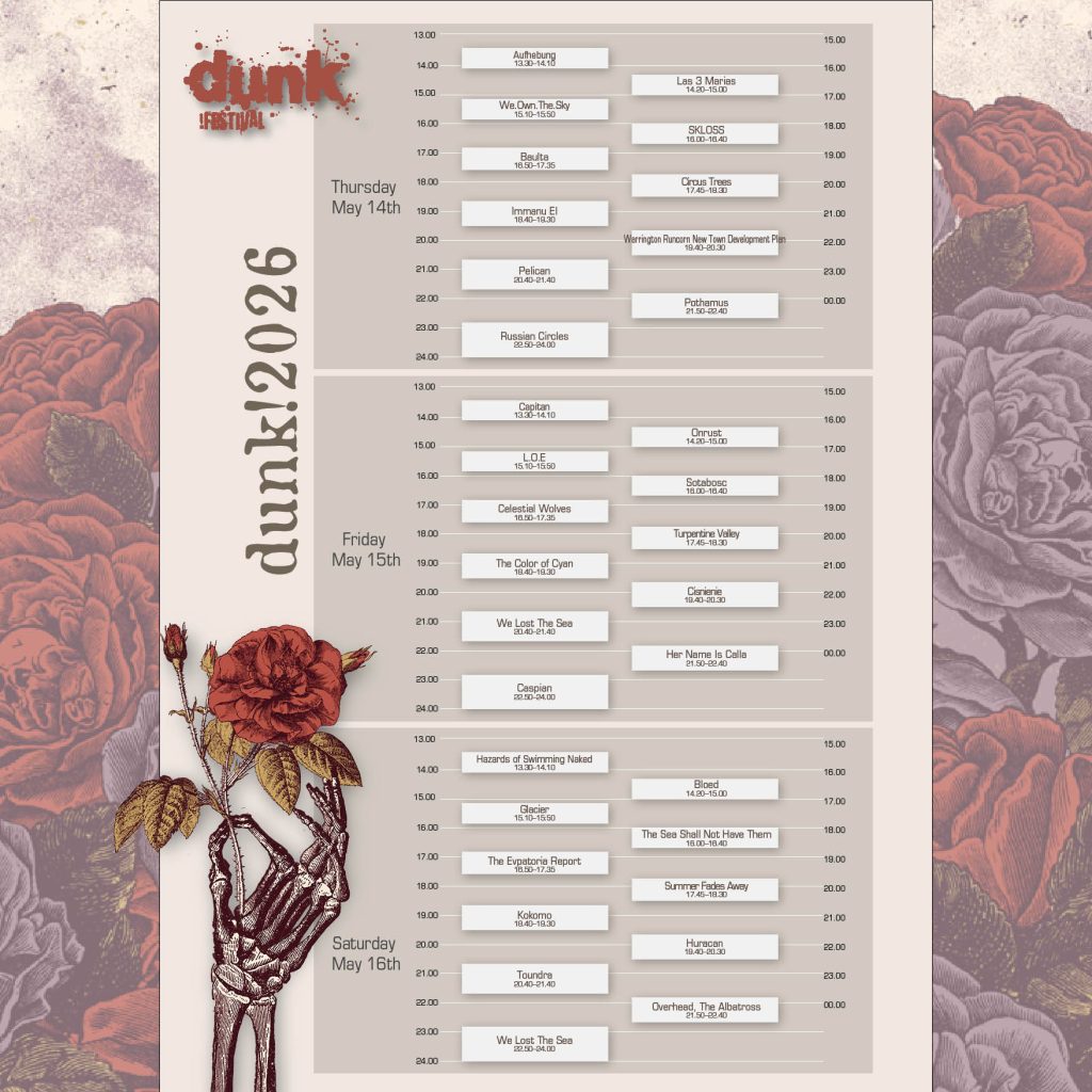 并不以规模最大著称,Dunk! Festival以自己纯粹性和象征意味,在全球后摇乐迷中都建立了影响力。2026年,Dunk!将会重回佐特海姆 (Zottegem)的户外,并设置森林舞台。这也是他们的开始之地,由2005年直至疫情爆发。